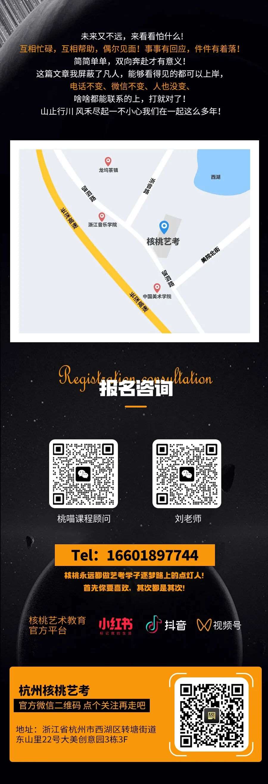 温馨提醒:各科目考试中,考生不可化妆,不得穿丝袜,不得佩戴饰品及美瞳类隐形眼镜,发式须前不遮额、后不及肩、侧不掩耳。考试全程摄像。评委可根据考核过程实际情况,对考生考试作出暂停、终止等指令。招生高校对表(导)演类服装表演方向专业一般有身高等身体条件要求,请考生结合自身条件谨慎报考。形体测量的方法与要求详见浙江省教育考试院网站“考试招生”栏目或文末“阅读原文”中相关考试简章附件。
